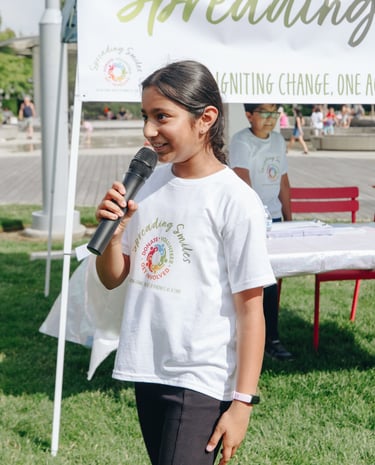 Through Spreading Smiles, I organize book and supply drives, Children's Business Fairs, essay competitions, educational events, and community programs designed to promote education while also encouraging students to think boldly, speak confidently, and dream big.