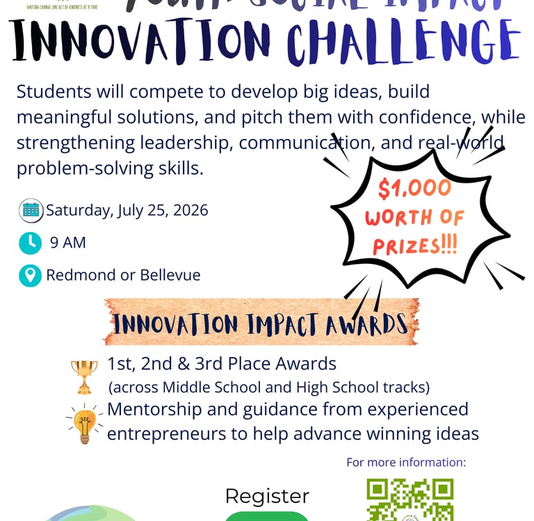 The Innovation Challenge is a one-day, in-person youth leadership and social impact event where students work in teams to design practical solutions to real-world community issues and present them to a panel of judges.